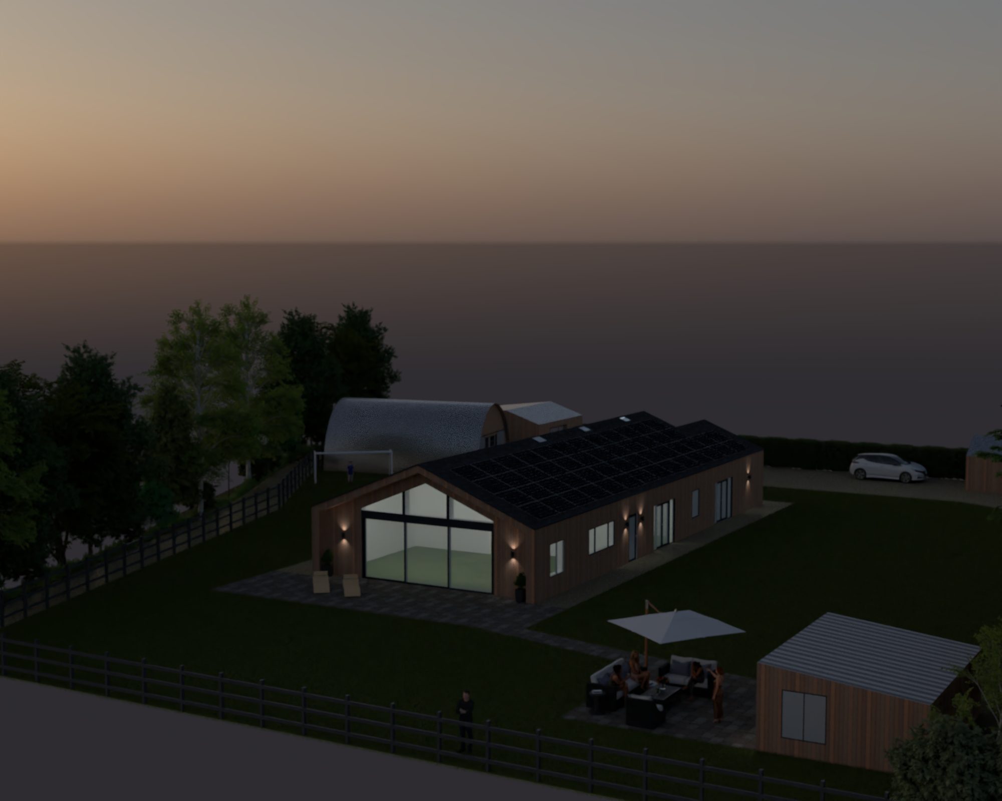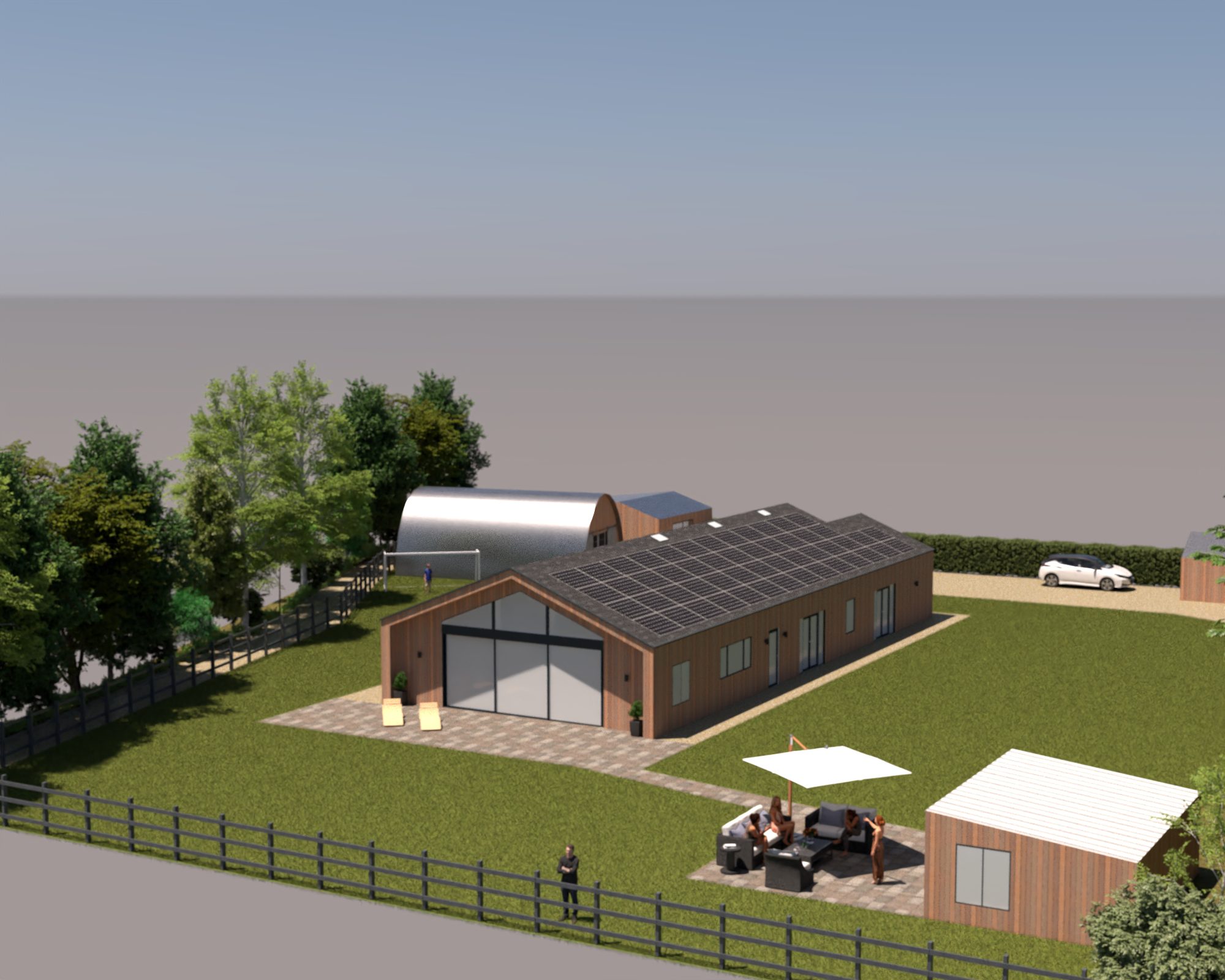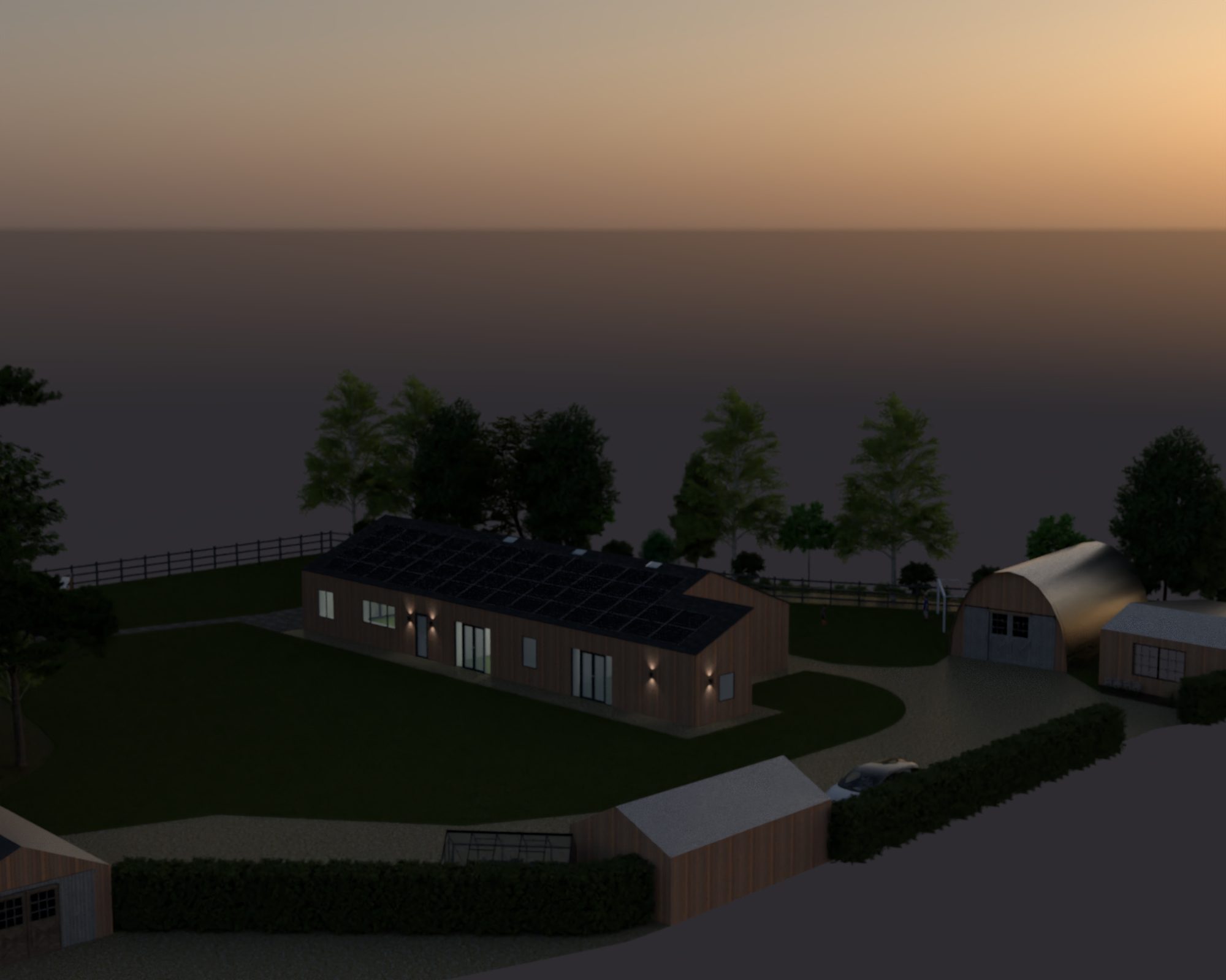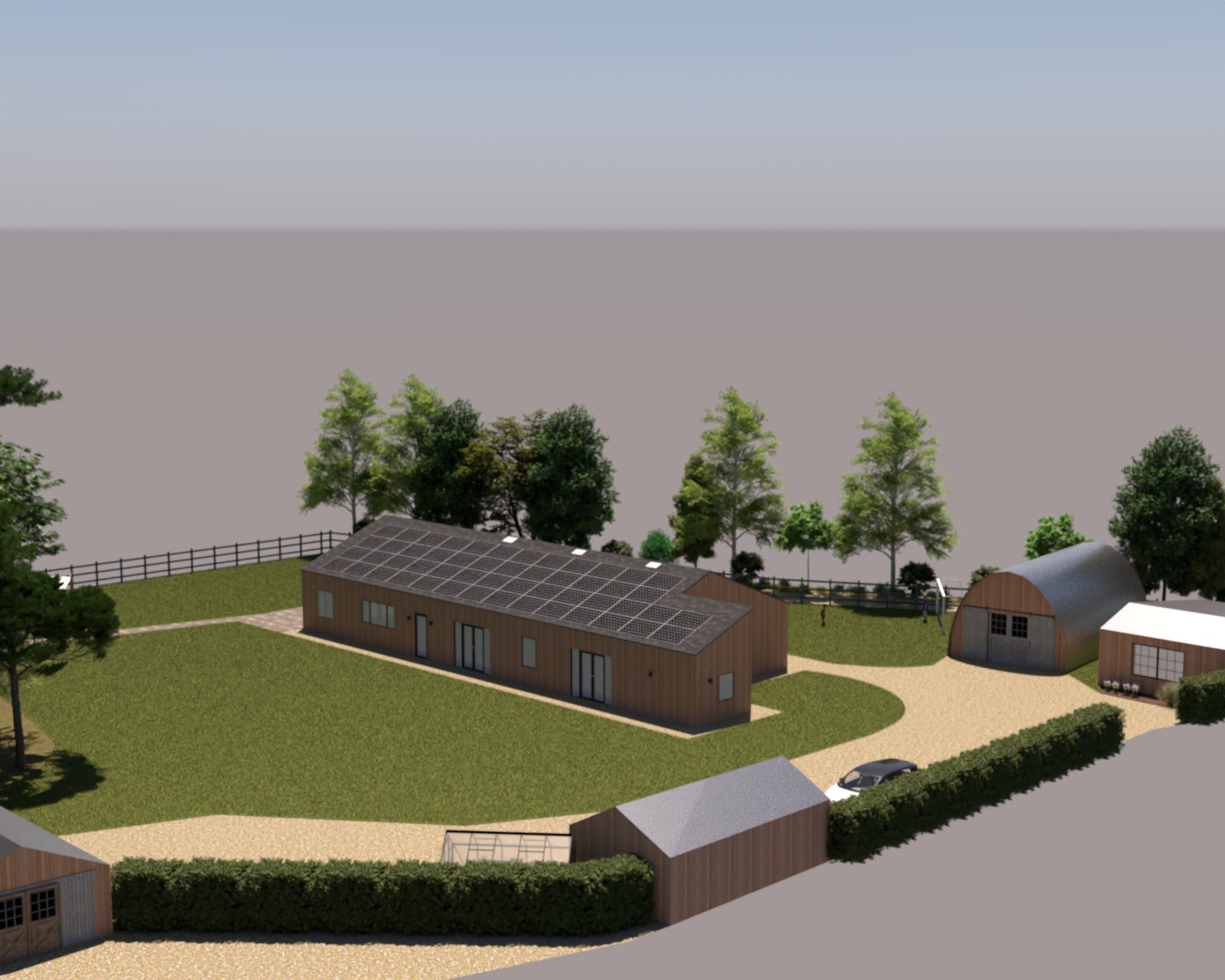 It has been fun to work with the traditional 2D birdseye view plans but I was hoping we’d be able to translate them into something more relatable. I’ve not gone to the trouble of designing gardens and such so it is pretty much just the buildings and a very green lawn. It also looks like the site is surrounded by sea but I think it has helped to get a little taster of how things could look.