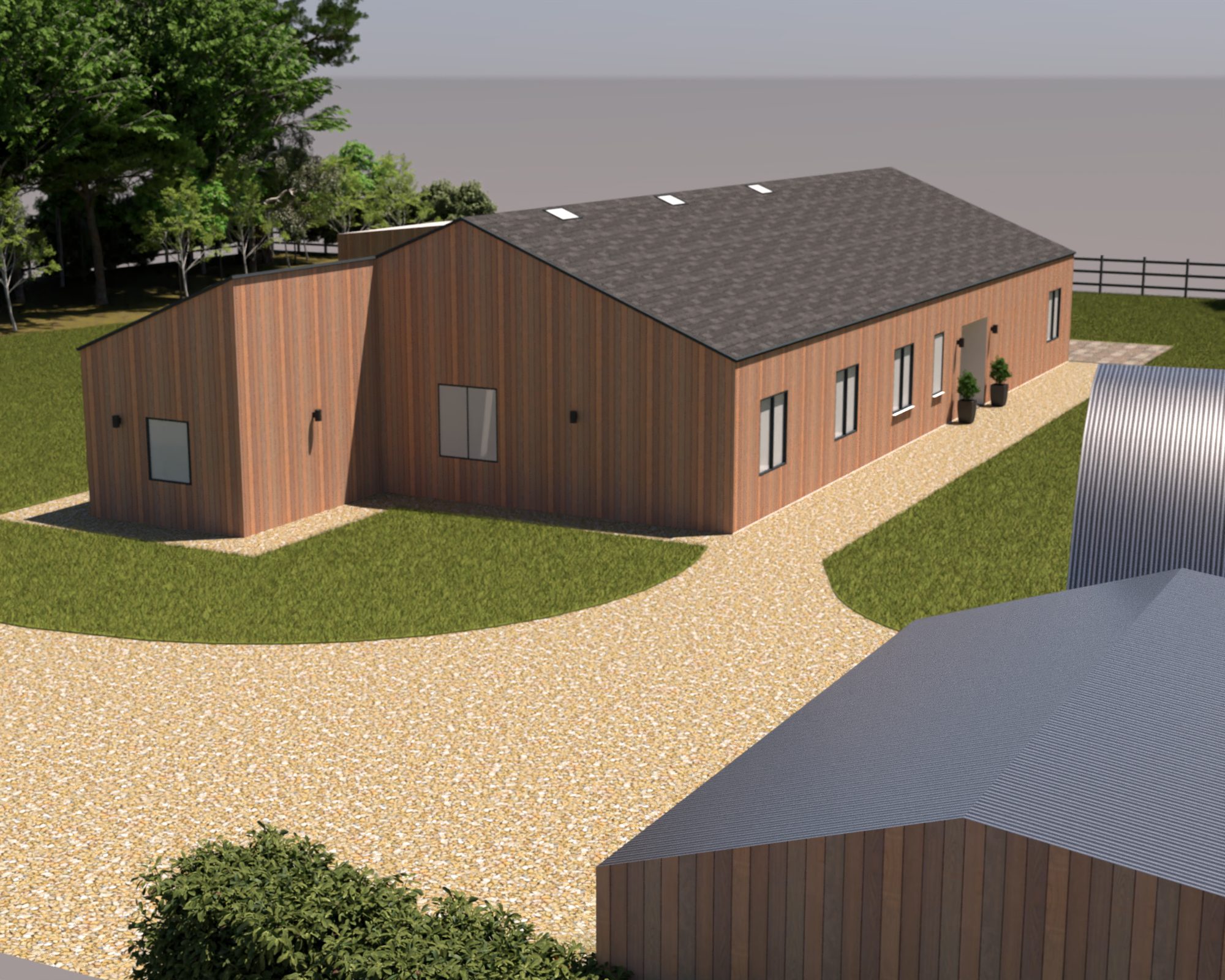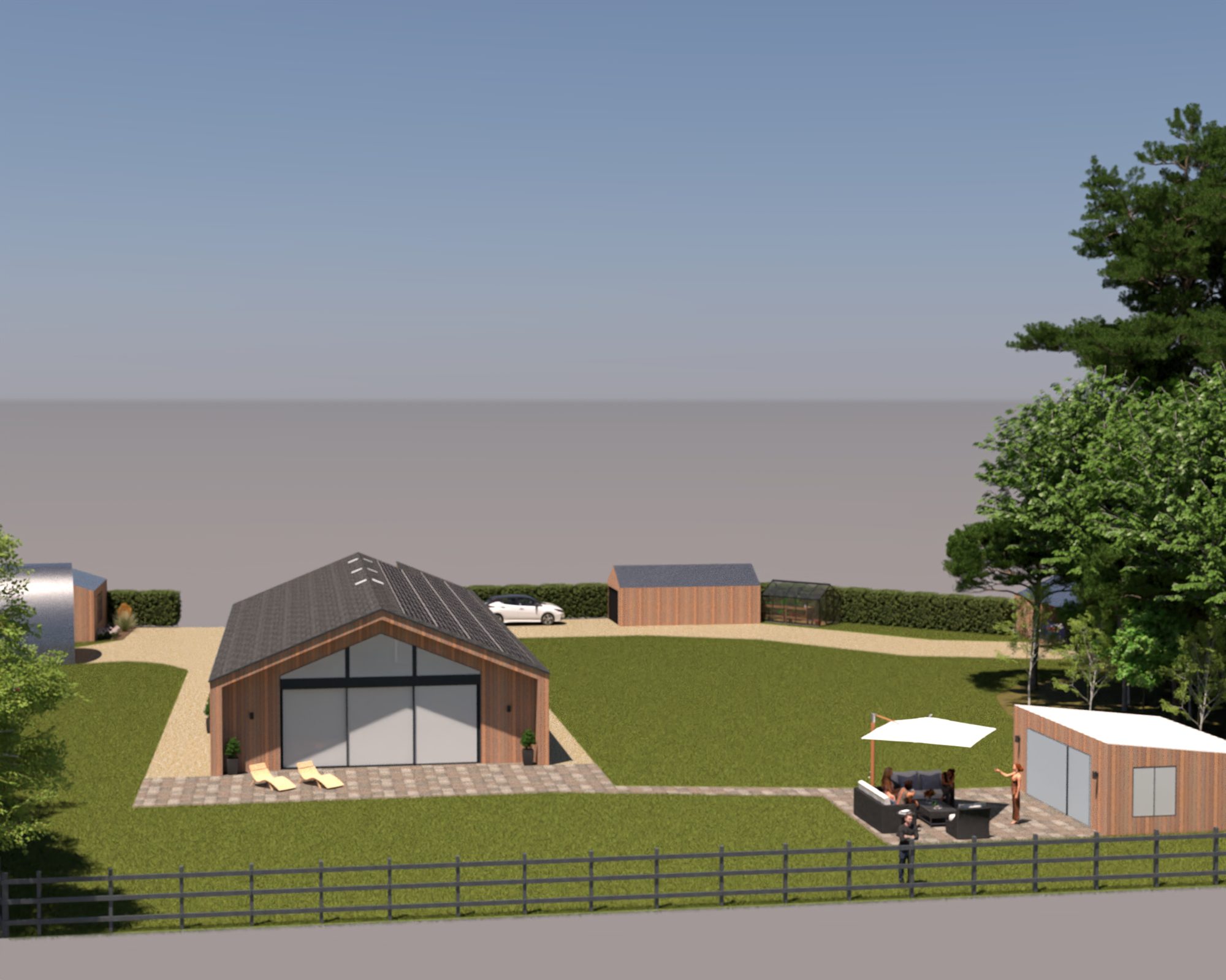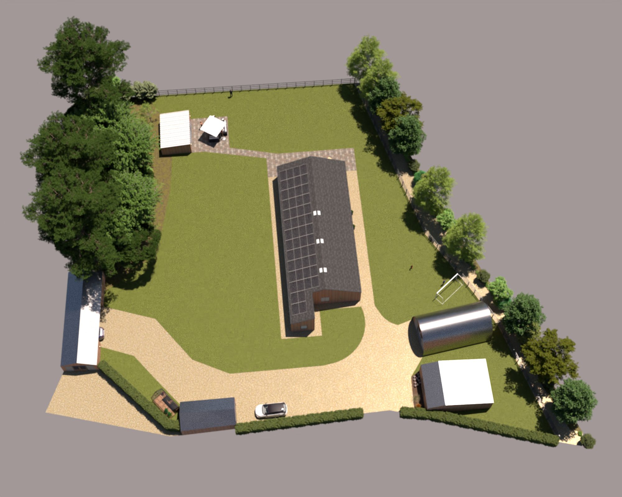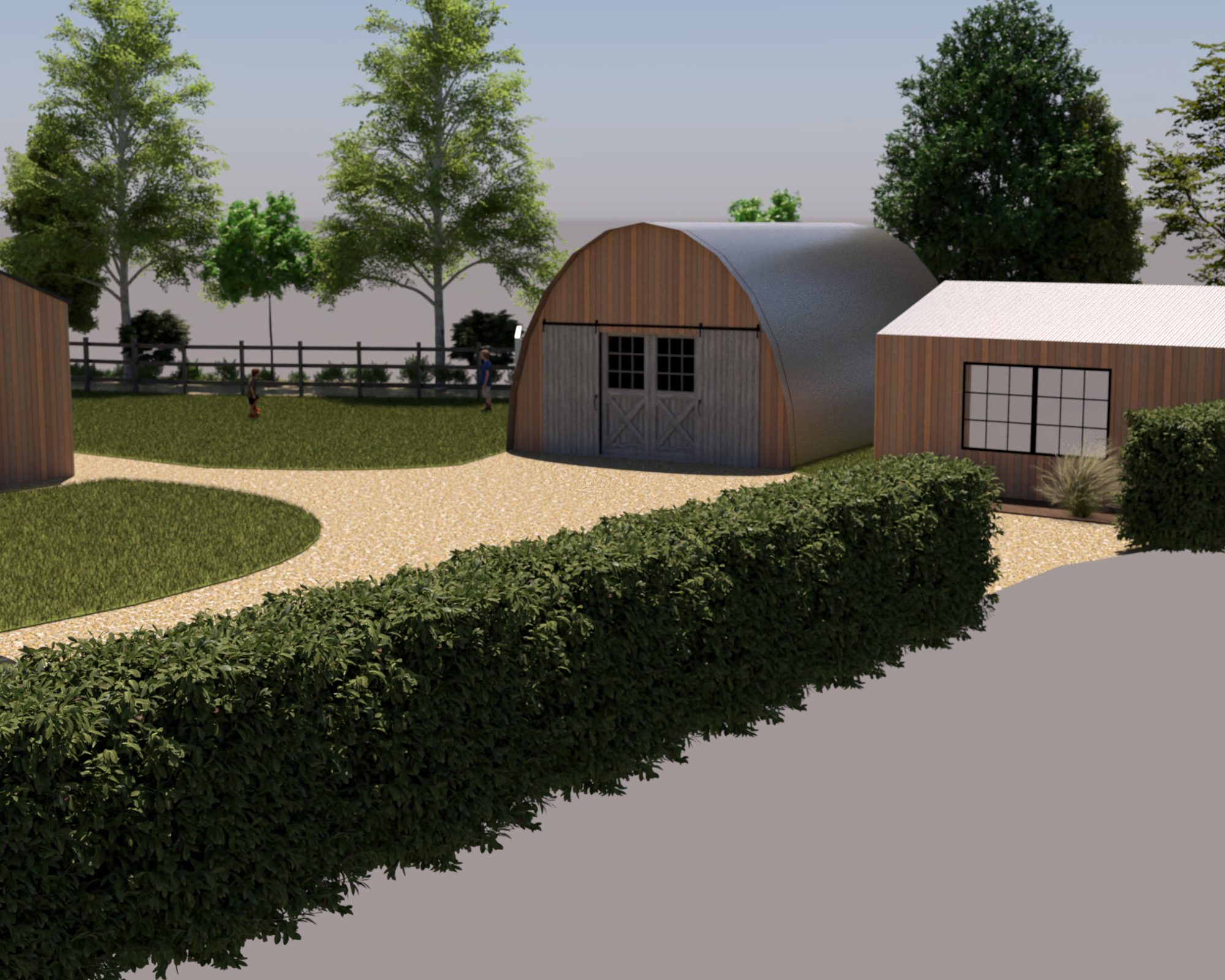 It has been fun to work with the traditional 2D birdseye view plans but I was hoping we’d be able to translate them into something more relatable. I’ve not gone to the trouble of designing gardens and such so it is pretty much just the buildings and a very green lawn. It also looks like the site is surrounded by sea but I think it has helped to get a little taster of how things could look.