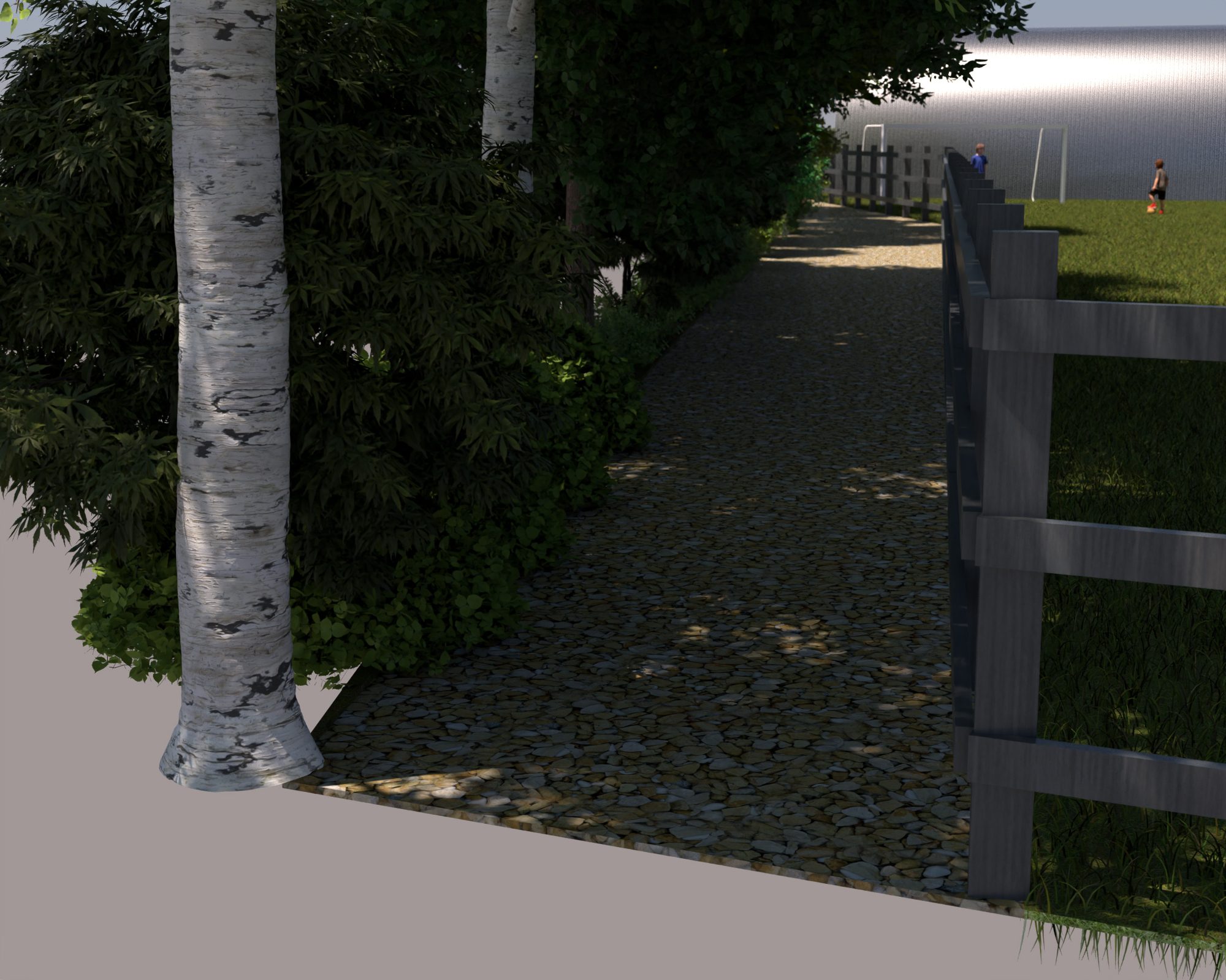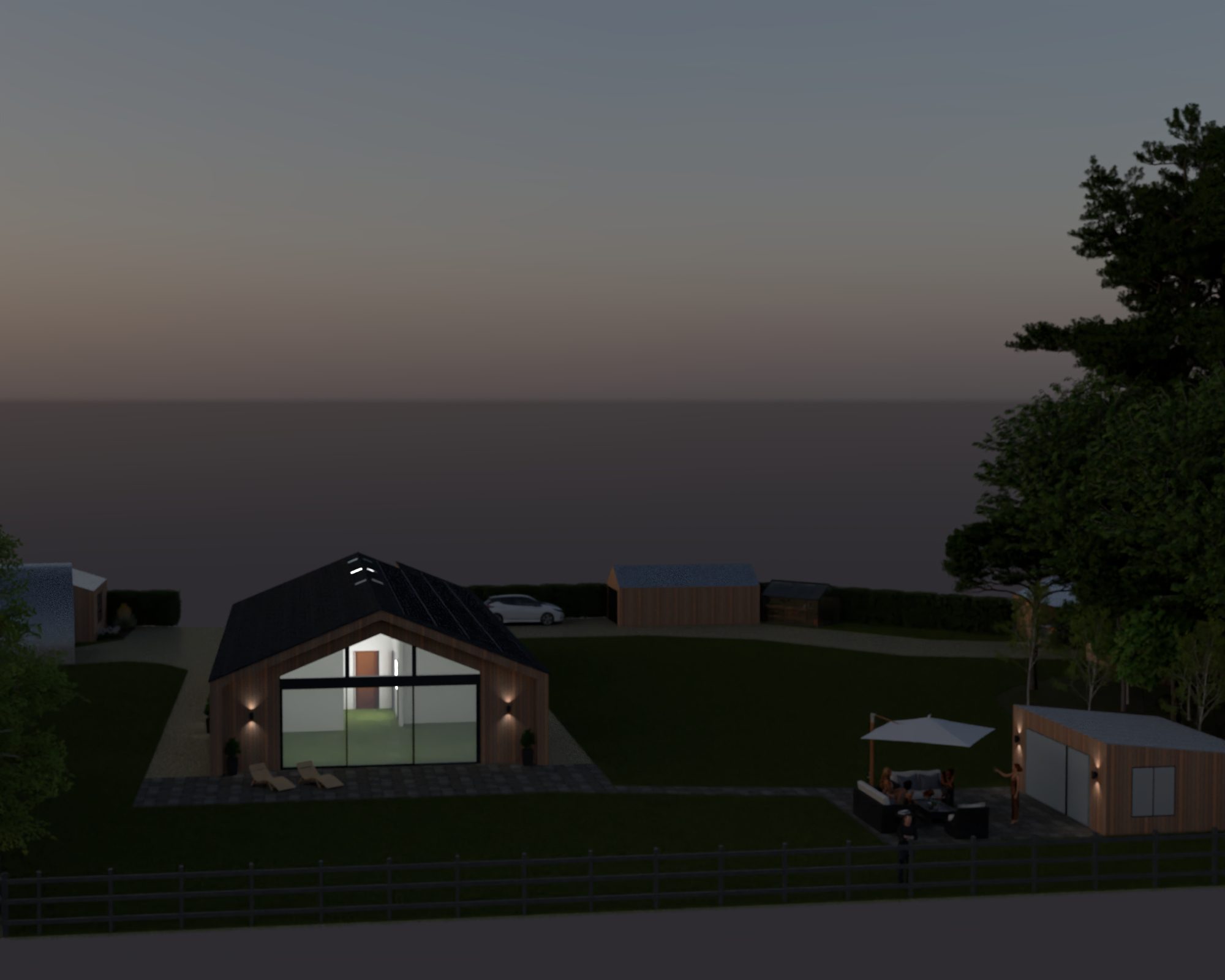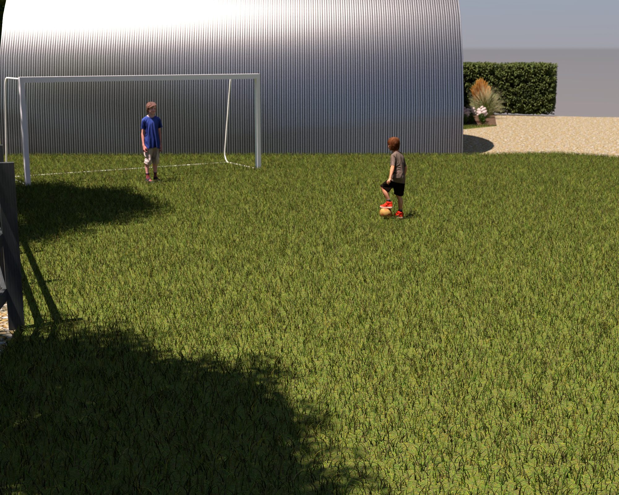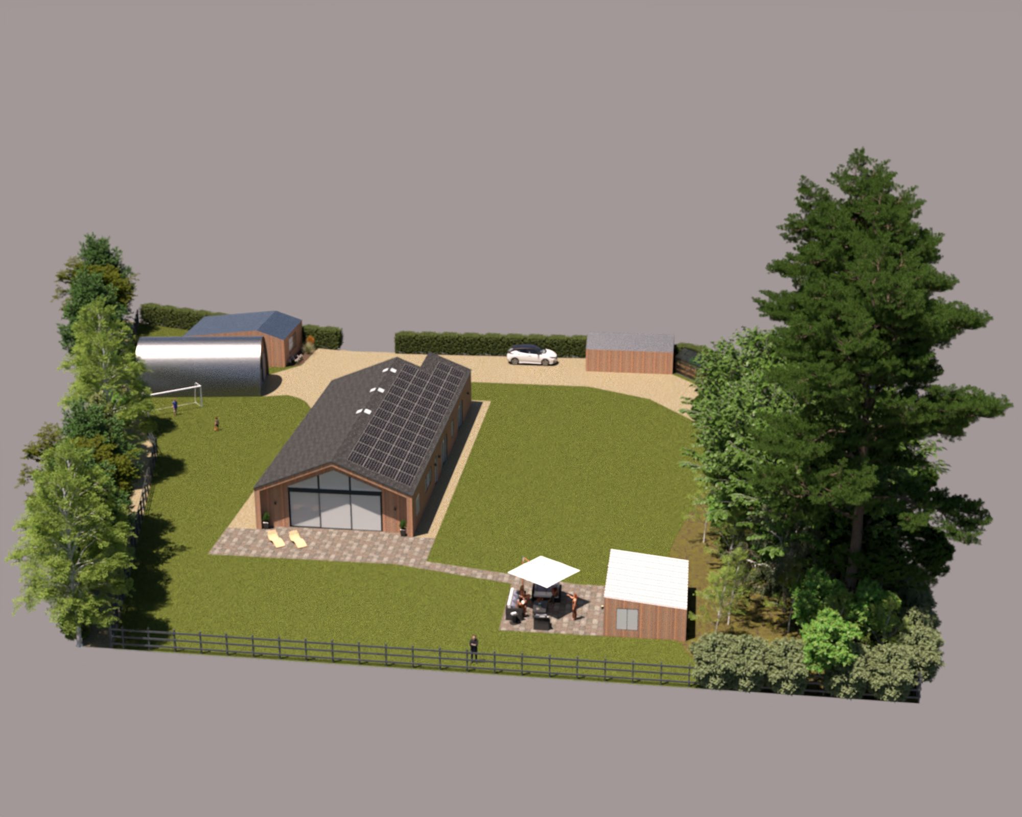 It has been fun to work with the traditional 2D birdseye view plans but I was hoping we’d be able to translate them into something more relatable. I’ve not gone to the trouble of designing gardens and such so it is pretty much just the buildings and a very green lawn. It also looks like the site is surrounded by sea but I think it has helped to get a little taster of how things could look.