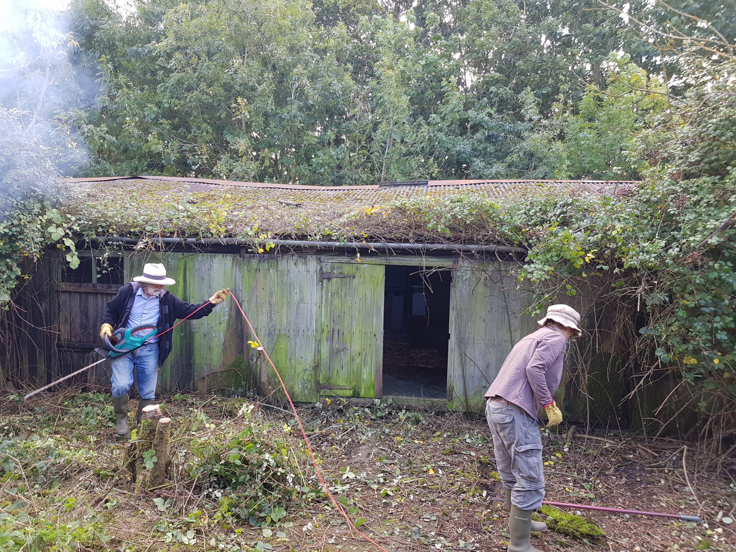 Fortunately, much of the clearance had been tackled last summer, making our task somewhat more manageable, as the greenery had previously encroached right up to the Nissen hut and silos. Over several days spread out over weeks, we managed to clear a significant area to the right/north of the barn. However, more work is required throughout the year to keep the growth in check and continue reducing the wilderness.